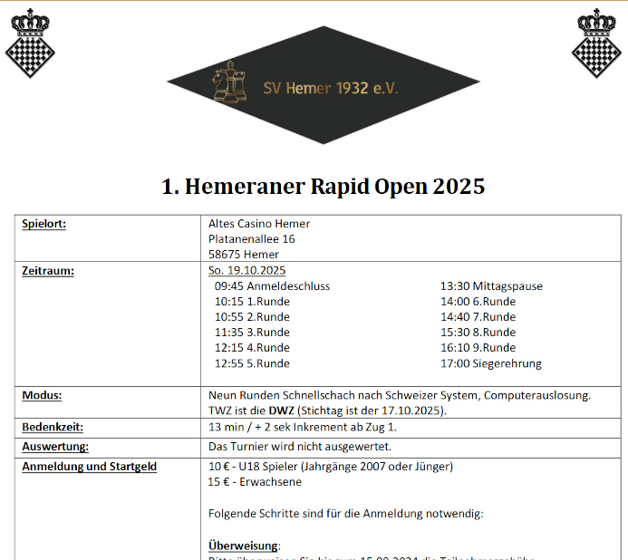 In der letzten Runde ist es leider zu der ersten kampflosen Partie in dem Turnier gekommen. Falls ihr an dem ausgeschriebenen Termin keine Zeit habt, meldet euch bitte bei eurem Gegner, damit die Partie verschoben werden kann. Andernfalls wird die Partie als kampfloser Verlust gewertet. Es gibt aber auch positives von der letzten Runde zu … Weiterlesen